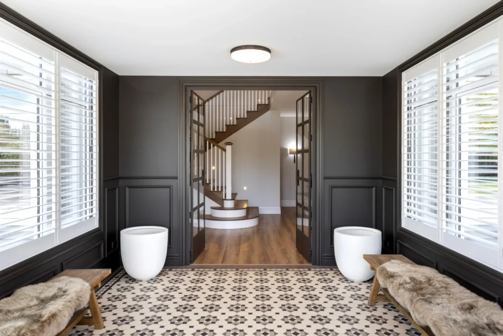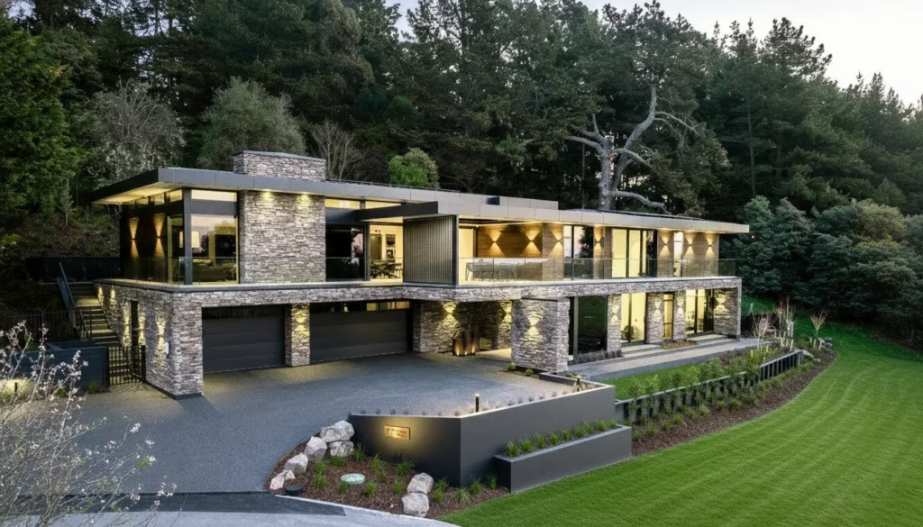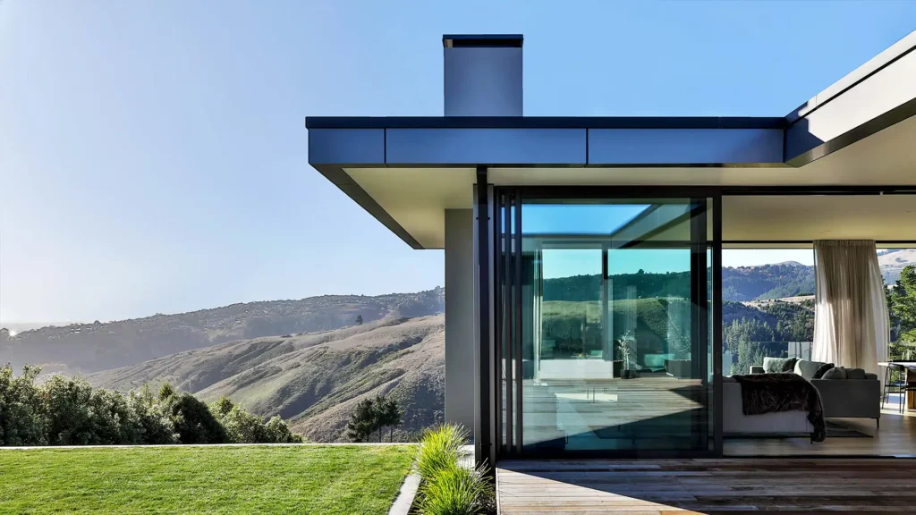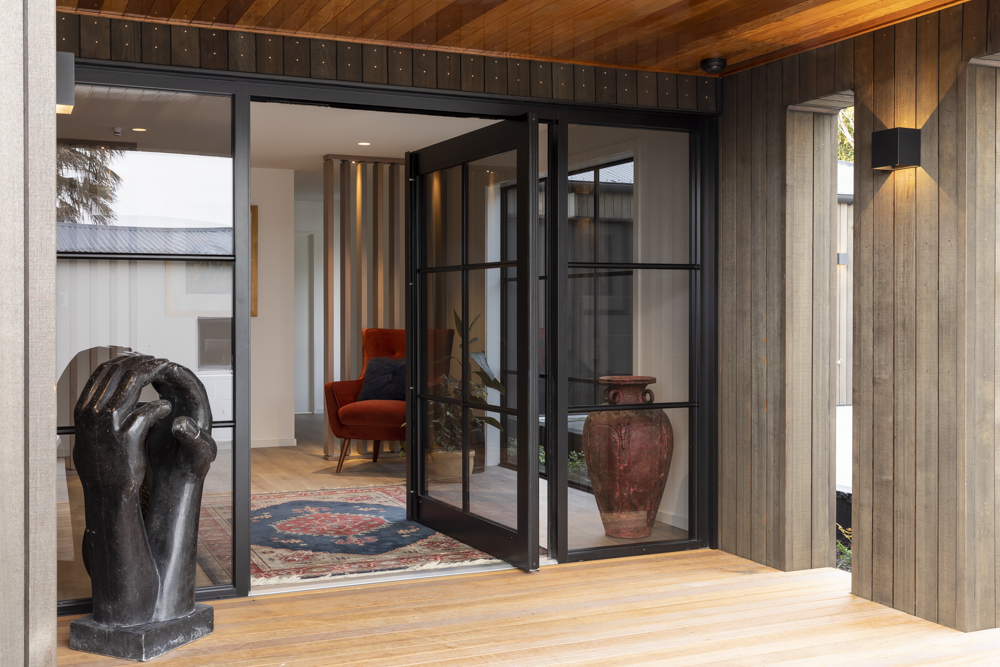 An architecturally designed home on a Tai Tapu property, built by DJ Hewitt in 2005, was constructed with block walls designed to resemble a pinwheel.