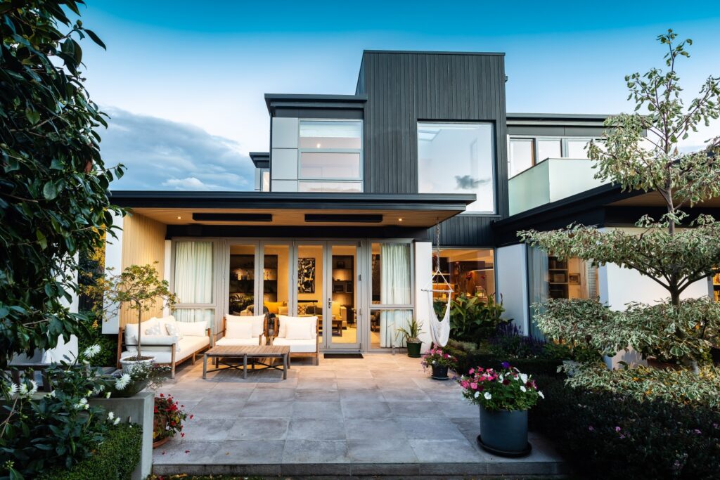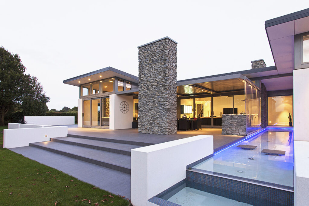 An architecturally designed home on a Tai Tapu property, built by DJ Hewitt in 2005, was constructed with block walls designed to resemble a pinwheel.