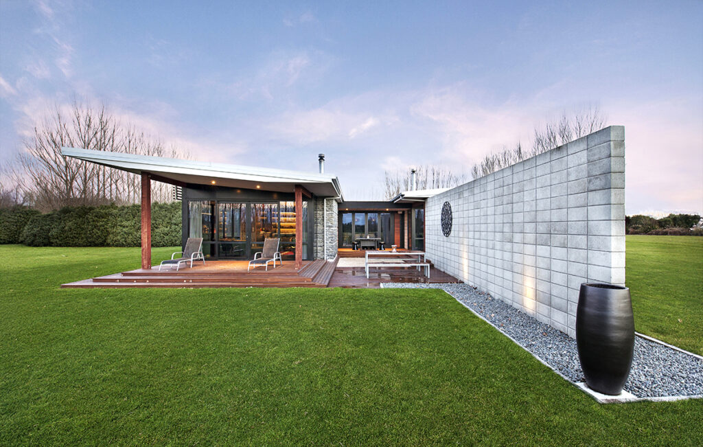 An architecturally designed home on a Tai Tapu property, built by DJ Hewitt in 2005, was constructed with block walls designed to resemble a pinwheel.